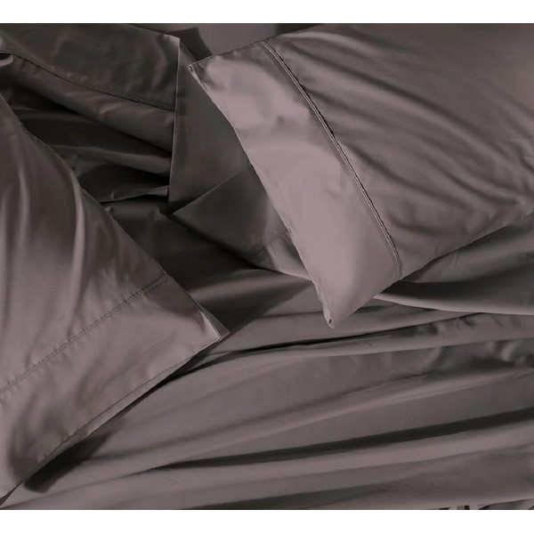 Royal Tradition Cool and Crisp Percale Cotton 4pc Sheet Set (Queen Size, Grey) Made in USA Breathable Classic Bed Sheets