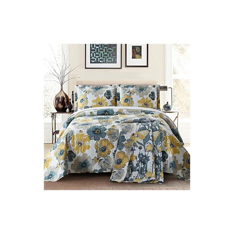 - ADD BEAUTY AND UNIQUENESS TO YOUR BEDROOM- With Our Unique Floral Printed Bed Quilt Set As The Lovely Design that come in an Exquisite Color Combination Will Brighten Up Your Room Décor