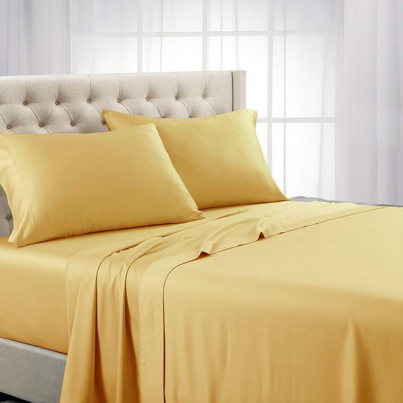 Royal Tradition Solid 600 Thread Count, 100-Percent Cotton King Bed Sheets Set (Gold) Breathable, Deep Pocket, 4 Piece Sheet Set