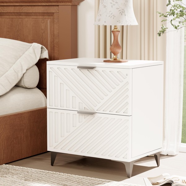 Royal Windsor Fluted Nightstand with 2 Drawers, Side End Table, Small Accent Storage Cabinet,Modern Night Stand Bedside Table for Bedroom, White