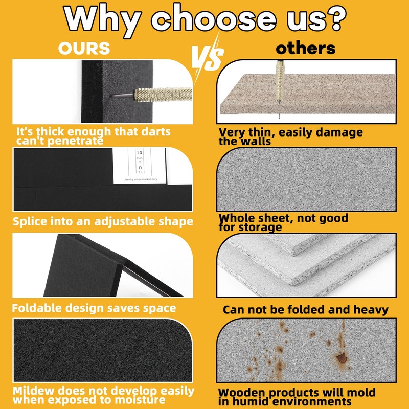 - Easy to use and store: You can also combine according to your own needs, splicing into a more suitable wall shape of the dart back. When you don't need them for a while, you can stack them in small pieces, which is easy to find and saves space.
