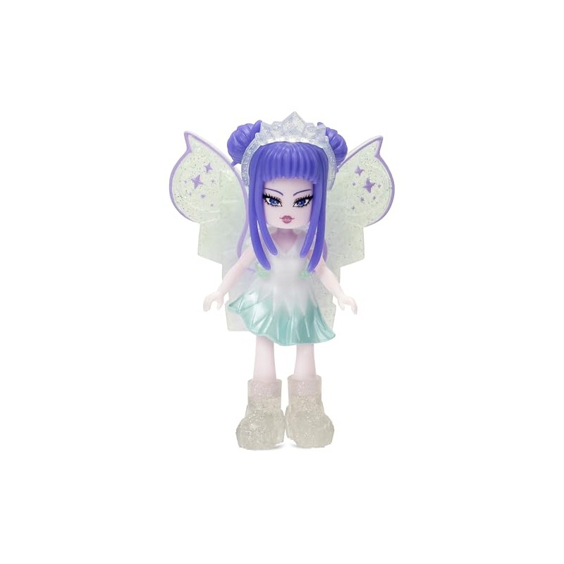 Step into a magical world of fashion and style with Royale High, a virtual realm bound to captivate! Ice Fairy, the 3-inch game-inspired doll, comes with nine mix-and-match fashions and fairy wings that become a wearable ring! Each Fairy represents an Element, including Dark, Ice, Water, Light, and Nature; collect all five Series 2 dolls to complete your collection. A redeemable virtual item code is included to accessorize your fairy across all experiences. Officially licensed. Ages 5+.