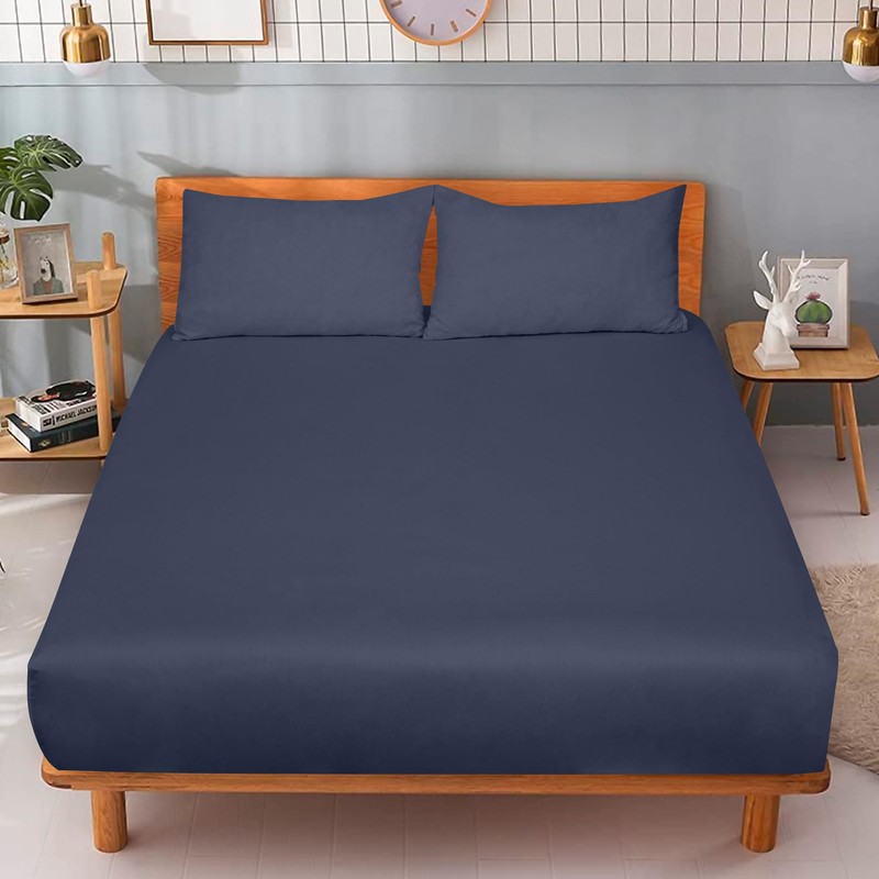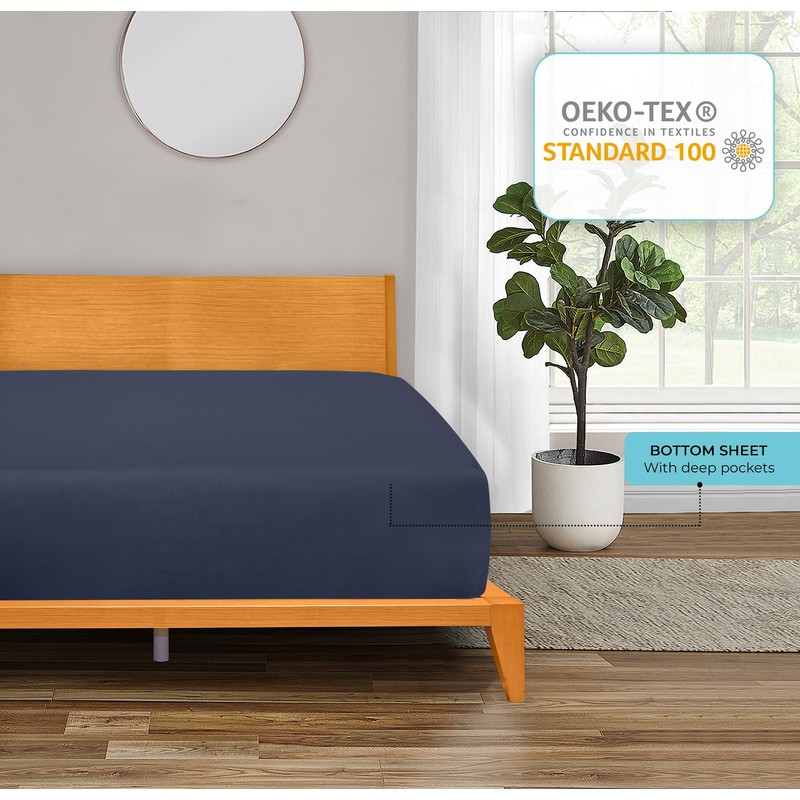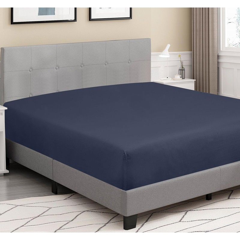 Royale Linens 300 Thread Count 100% Long Staple Combed Cotton Fitted Sheet - Super Soft Deep Pocket Bottom Sheet - Navy Fitted Sheet Full Size - Full Fitted Sheet Only - Elastic Sheet (Full, Navy)