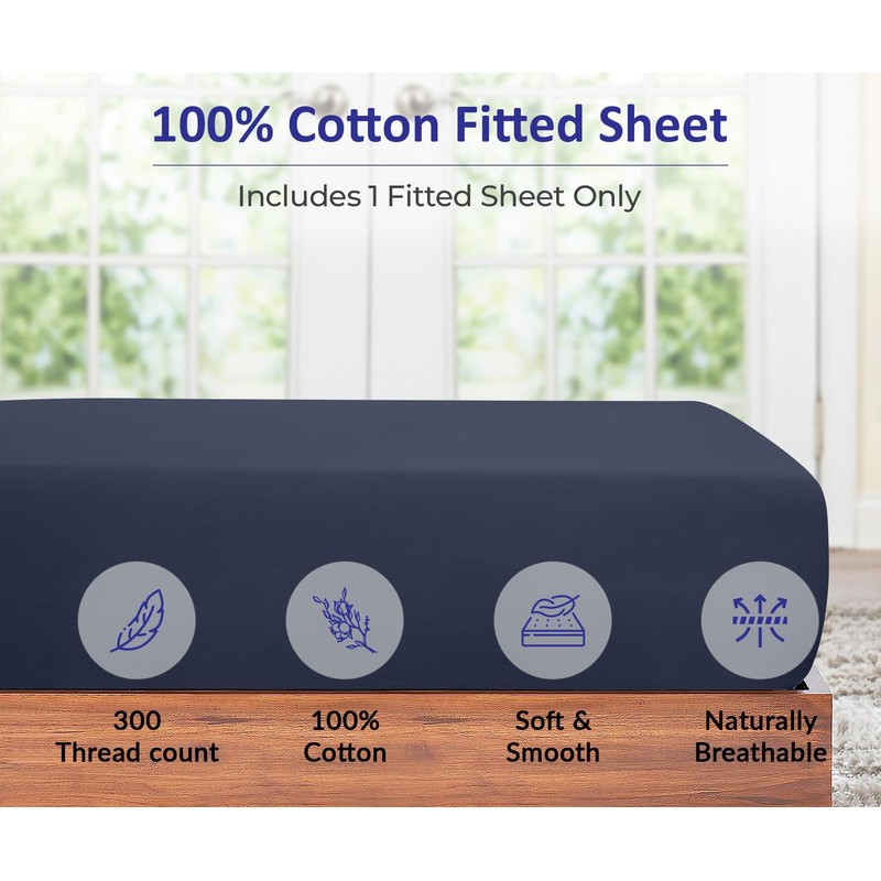 """A Good Night Sleep Is Just A Moment Away"" Royale Linens Cotton Fitted Sheet Are Manufactured Using Finest Quality 100% Premium Cotton. Our 300 thread count Fitted Sheet is soft & smooth. Making Them Breathable, Comfortable And Cozy. Royale Linen Sheet Set Comes In 4 Different Sizes Twin Size Measuring: 39X75 Inch with A Deep Pocket Drop Stretched Up to 16 Inch Full Size Measuring: 54X75 Inch with A Deep Pocket Drop Stretched Up to 16 Inch Queen Size Measuring: 60X80 Inch with A Deep Pocket Drop Stretched Up to 16 Inch King Size Measuring: 78X80 Inch with A Deep Pocket Drop Stretched Up to 16 Inch Royale Linens Twin Size Fitted Sheet Are Breathable, Cool And Super Silky Soft. Fabric Is Processed To Make It Shrink And Fade Resistant. Perfect For Bedroom, Guest Room, Kids Room, Hotels. Great Gift Idea For Men And Women On Valentine's Day - Mother's Day- Father's Day And Christmas. Our Fitted Sheet Are Certified Standard 100 By Oeko‐Tex. According To The Guidelines, These Products Are Tested For Harmful Substances And Produced In An Environment Friendly And Socially Responsible Manner. Also Sustainable In Accordance With Oeko-tex Guidelines. Care Instruction: Machine Wash Or Hand Wash Using Cold Water Along With A Mild Detergent Is Recommended For Extending The Life Of The Set Along With Retaining Its Comfortability. Washing At High Temperatures Causes Microfiber To Expand Which Results In The Trapped Dirt And Other Tiny Particles Being Released. If You Want To Hand Wash The Set, Then Consider Using A Soft-haired Brush To Rinse Thoroughly."