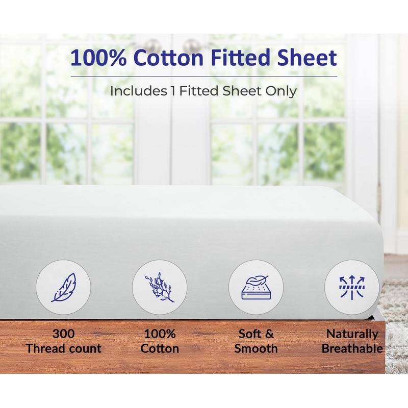 • HIGHEST QUALITY 100% PREMIUM COTTON & LUXURIOUS WEAVE: Royale Linens 300 Thread Count Cotton Fitted Sheet Is Manufactured Using Finest Quality 100% Double Brushed Cotton. Making Them Breathable, Comfortable And Cozy. With Our Premium Weave. Experience Luxury And Comfort Like Never Before, Wash Before The First Use To Unlock Softness