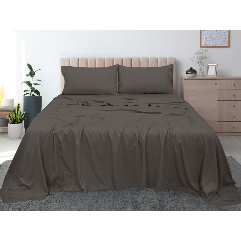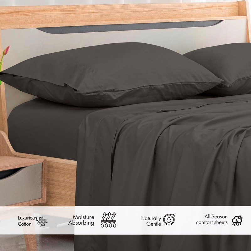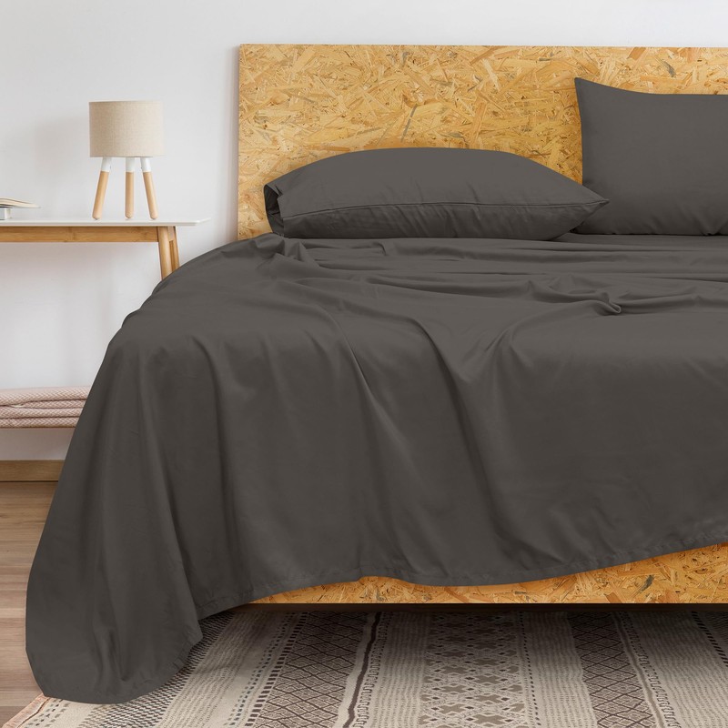 ROYALE LINENS 300 Thread Count 100% Long Staple Combed Cotton Flat Sheet - Super Soft - Top Sheet - Queen Flat Sheet Sold Separately - Breathable, Cool & Crisp Percale Flat Sheet Only (Queen, Grey)