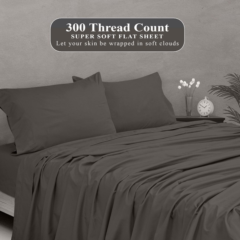 - PREMIUM FABRIC: Royale Linens 300 Thread Count Flat Bed Sheet Is Manufactured Using Finest Quality 100% Brushed Cotton. Making Them Breathable, Comfortable And Cozy. WASH BEFORE THE FIRST USE TO UNLOCK SOFTNESS