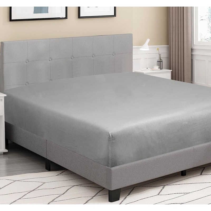 ROYALE LINENS - Sábana bajera de 300 hilos, 100 % algodón, elástica, ultrasuave, resistente a las arrugas y a la decoloración, bolsillo profundo que se estira hasta 41 cm (matrimonial, plateado)