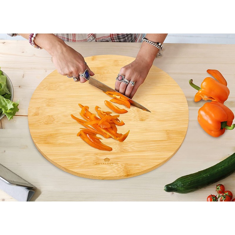 RoyalHouse Natural Bamboo Round Cutting Board for Kitchen, Chopping Boards for Meat & Vegetables, Cheese and Charcuterie Board, Serving Tray, 11.8" Round 0.6" Thick, Pack of 4