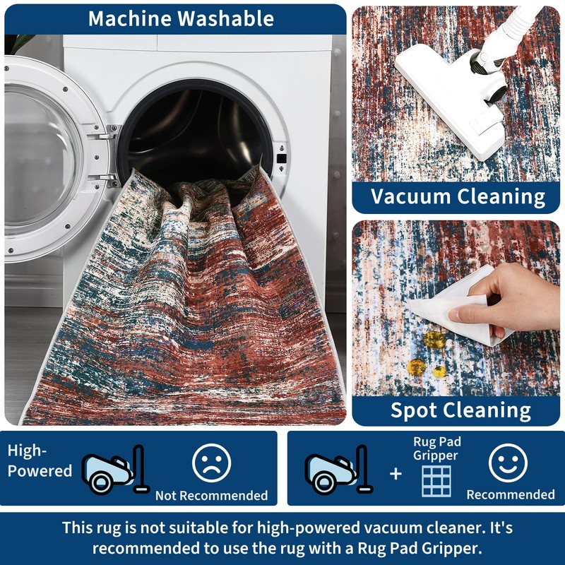 - 【Easy to Clean Washable Rug】Vacuum regularly to prevent grit from breaking down the fibers. For a deeper clean, simply toss in the washing machine on a gentle cycle with cold water, air dry and not need add bleach. Our area rugs may have temporary creases after you receive it. Please give it some time to flatten itself.
