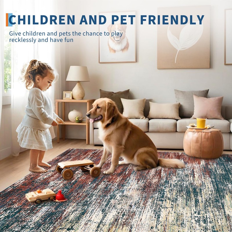 - 【Modern Abstract Rug】 The low pile and lightweight rug pattern of this modern rug adds a touch of abstract charm to any room in your home. With its intricate details and rich colors, this distressed rug is sure to make a statement. Modern area rug with accent and classic design, fresh your home easily.