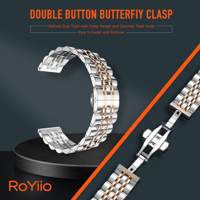 - Exquisite design: the double button folding clasp provides additional protection for your watch. The butterfly clasp makes the band clean and easy while still providing reliable protection for your watch.