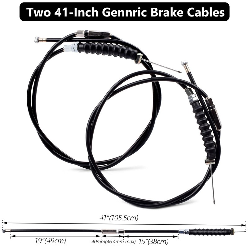 - Size: Overall cable length:1055mm(41"),Black rubber sleeve: 870mm(34"), additional adjustment: 46mm(1.8"),The 2 brake cables replacement can be used left and right sides