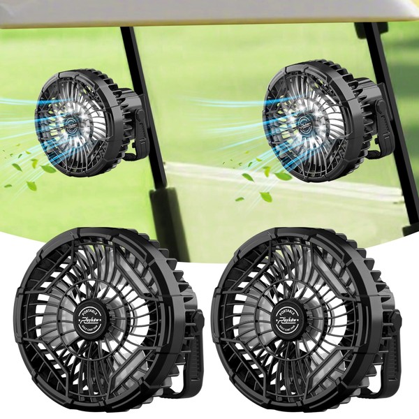 Roykaw 10400 mAh Magnetic Golf Cart Fan Portable Rechargeable Battery Powered, 24+ Hrs, w/LED Lights, Compatible with EZGO/Club Car/Yamaha & All Ironic-Body, Cordless & Remote Control, 2 PCS