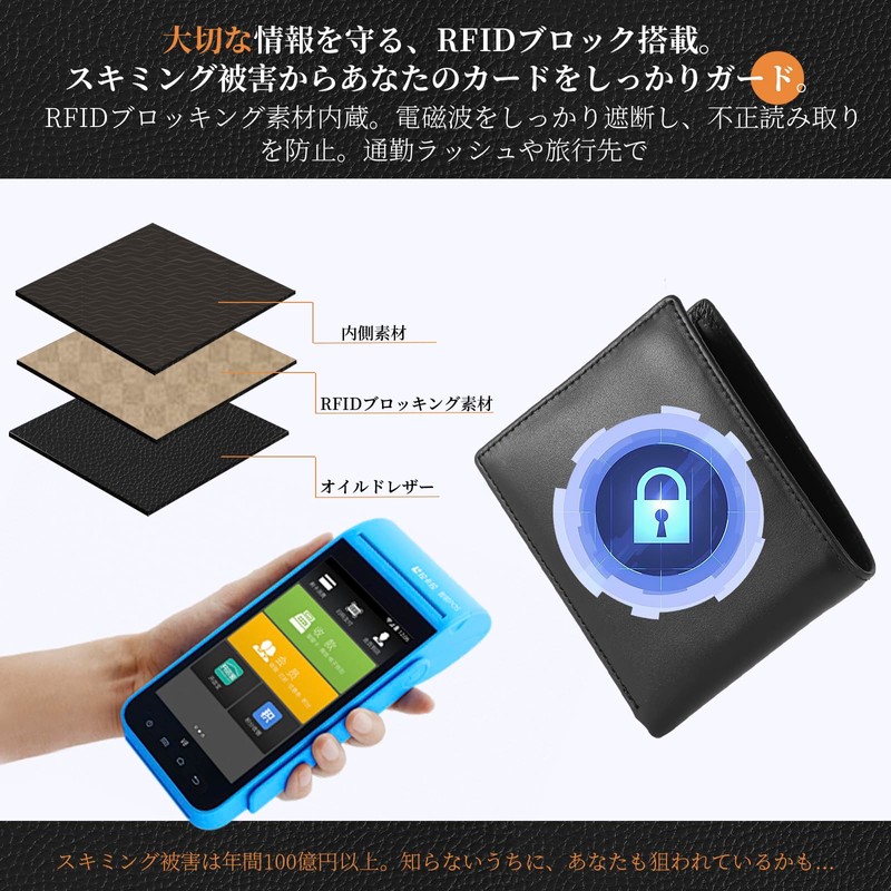 - RFID Blocking Function Secures Your Personal Information: The entire wallet is equipped with RFID skimming prevention materials. Stops card information from being read due to unauthorized radio waves. Especially for those who use traffic IC cards and electronic money, and those who frequently carry crowds or business trips abroad. Protects your valuable information by eliminating the worries that your information may be stolen without noticing..