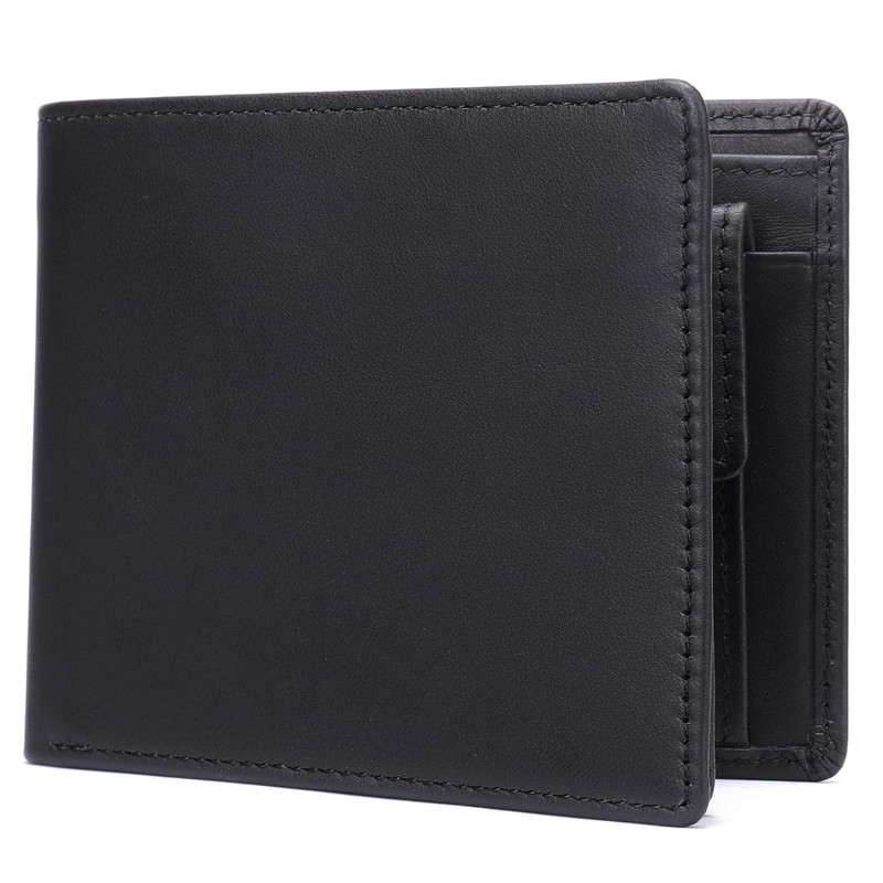 Roypad Men's Bi-Fold Wallet, Genuine Leather, Thin, Large Capacity, Skimming Prevention, Coin Purse Included, Great Gift, Fine Leather, Compact, Bifold Wallet, For Men, Black