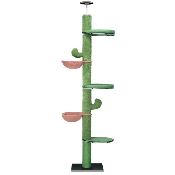 ROYPET Adjustable Tall Cat Climbing Tree Floor-to-Ceiling Climber Toy with Hanging Hammock and Scratching Posts Furniture,Green