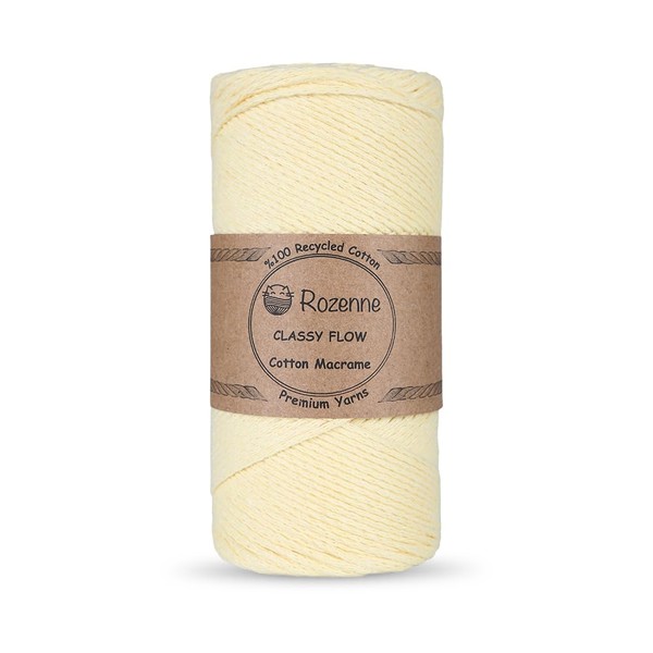 Rozenne Classy Flow 100% Cotton Macrame Cord Soft Yarn for Crocheting & Knitting, Each 8.8 Oz (250 Gr), 273 Yd (250 mt) (1, Light Yellow - 03)