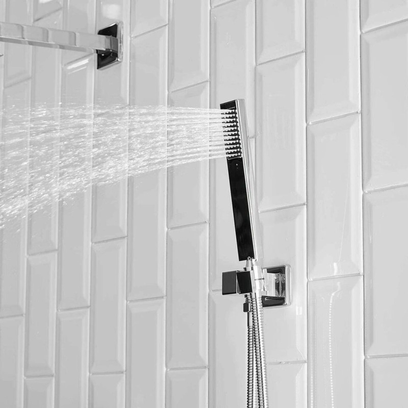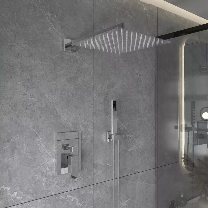 Rozin Chrome Shower Faucet System Set Led 12" Rainfall Head Combo Kit with Mixer Valve