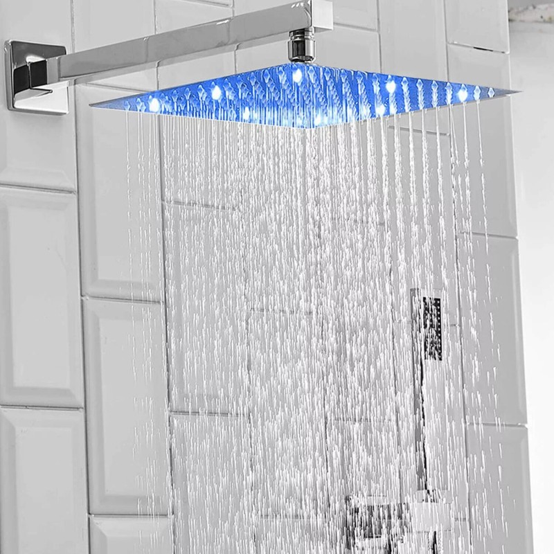 - 12 inch Stainless Steel LED Rain Shower Head and 14.5 inch Wall Mount Shower Arm