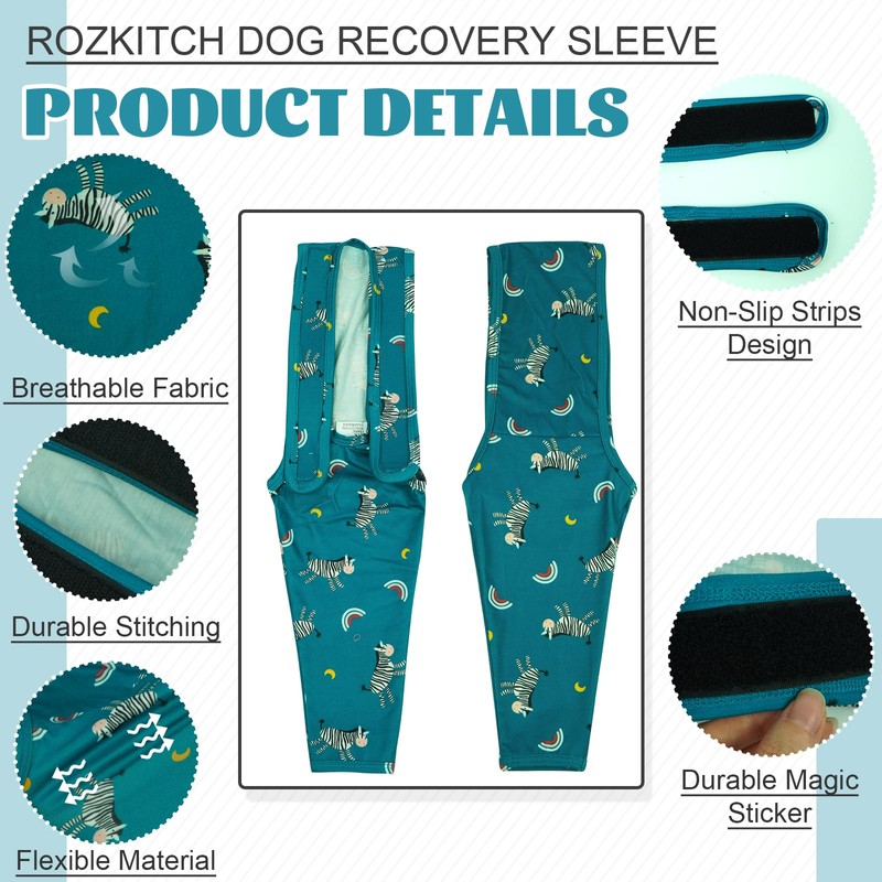 ROZKITCH Dog Sleeve to Prevent Licking for Front Right Left Leg, Pet Prevent Licking Wound Elbow Protector, Dog Recovery Suit Cone Collar Alternative for Sprain ACL CCL Arthritis Joint Care Zebra L