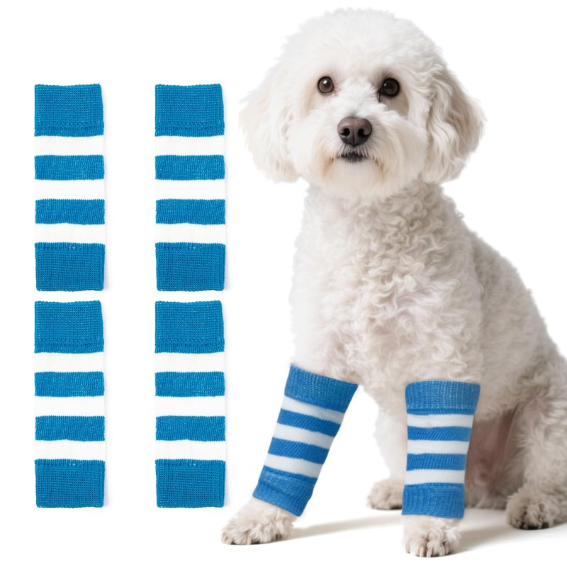 ROZKITCH Pet Dog Elbow Protector Dog Elbow Sleeve, 2PCS Front Leg and 2PCS Back Leg Knee, Elbow Wrap Leg Warmer Wrap Protector, Pet Elastic Knitted Breathable Protective BlueStripe M