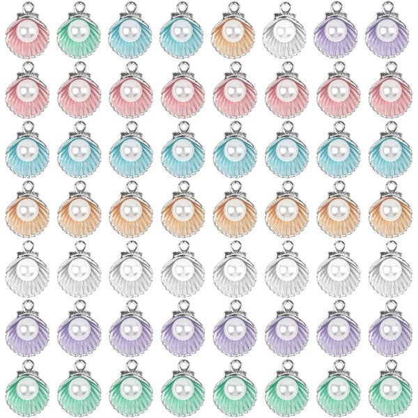 RP Remarkable Power, 60 Pack Enamel Clam Shell Charms Clam Shell Charm Pendants with Acrylic Pearl Beads for Bracelets Earrings Jewelry Making DIY Crafts