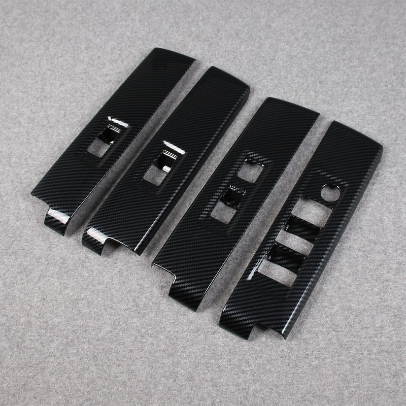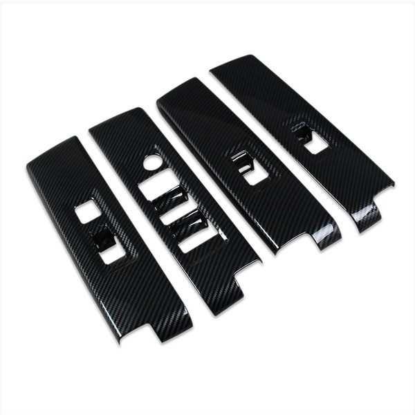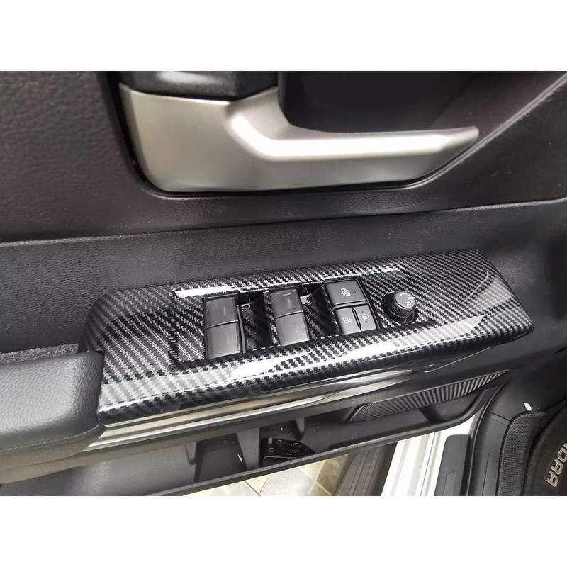 RQING for Toyota Tundra 2022 2023 2024 2025 Interior Window Switch Plate Panel Cover Trims Carbon Fiber Pattern