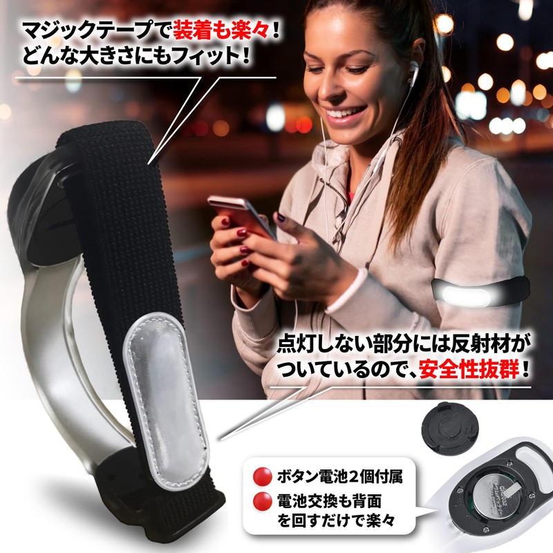 - The high brightness LED armband weighs 1.4 oz (40 g) and is equipped with a light and flashing pattern that provides outstanding presence. You can easily attach it to any size with the Velcro tape. Reflective material on the other side for added safety