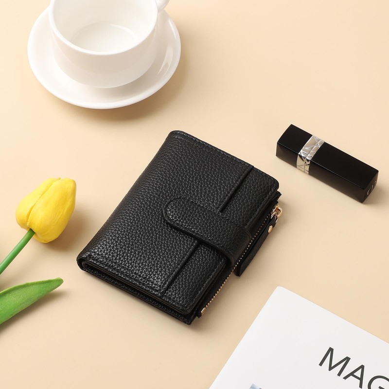 - 【Multifunctional Ladies Purse】The women wallets has 6 card slots, 1 bill compartment, 1 ID window, 1 zipped pocket for coins. A separate card slot has been designed externally for easier access. The small purse is spacious to store essentials such as ID card, driver's license, credit cards, banknotes, coins. It remains closed and tidy when it is filled.