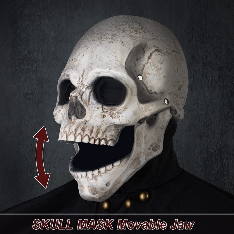 - 【REALISTIC MOVABLE JAW DESIGN】- Realistic Creepy Design: The jaw of the skull is movable. After wearing it, you can imitate the speech of the skull. Make you the most realistic skeleton in the dress up party