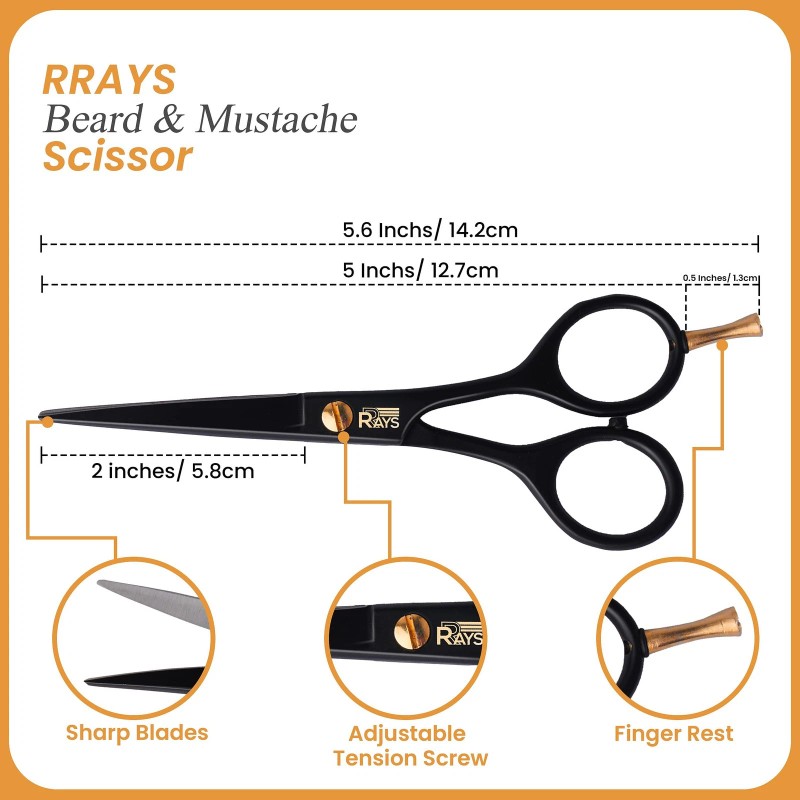 Rrays 5'' Beard Scissors for Men- German Mustache Scissors with Beard & Mustache Co...