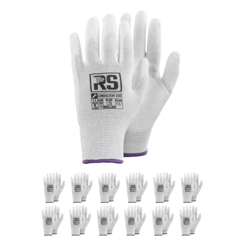 - RS CONDUCTOR ESD Assembly Gloves / Size 11, 12 Pairs / White / Assembly Gloves / Work Gloves / Protective Gloves