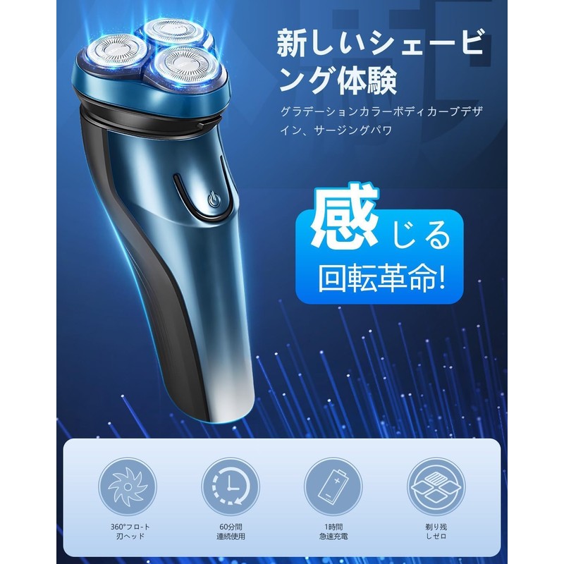 Rs370 Men's Electric Shaver, Electric Shaver, Electric Shaver, IPX7 Waterproof, Ultra Thin Mesh Blades, 3 Head Rotation, Deep Shaving, Low Noise, Washable, Wet and Dry Use, USB