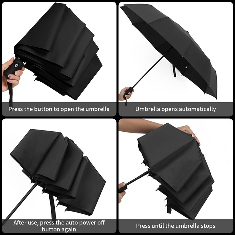 - Automatic opening and closing: This umbrella has an automatic opening and closing function, which can be opened or closed at the touch of a button. You can open and close the umbrella with one hand, and the umbrella pops up in one second, which is very convenient