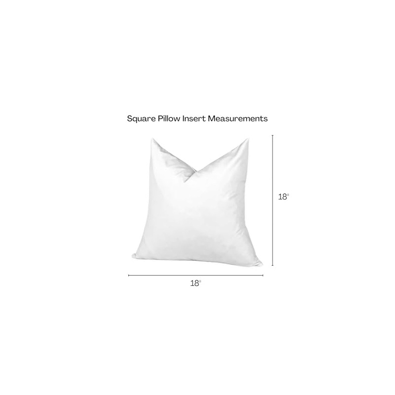 - SIZE SPECIFICATIONS – 18" by 18" Square pillow inserts. These inserts are sized to fit snugly into a 17" by 17" square pillow cover.
