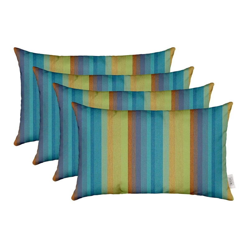 RSH DECOR: Sunbrella Lumbar Throw Pillows Set of 4 | 20" x 12" | Water and Fade-Resistant Performance Fabric | Outdoor Pillow Covers with Down-Alternative Inserts | Astoria Lagoon