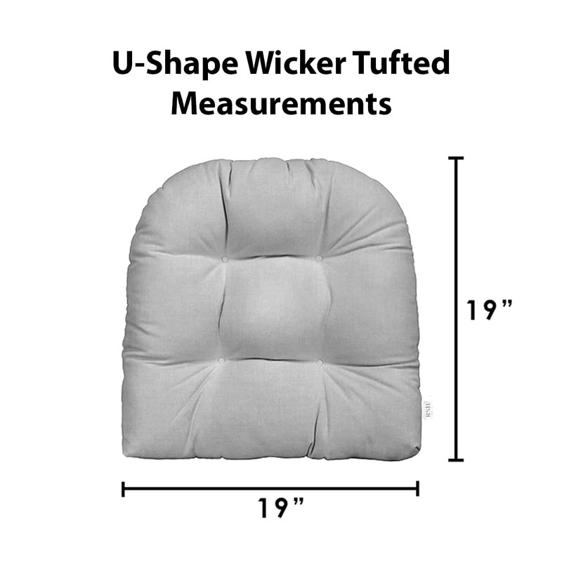 - SIZE SPECIFICATIONS – These U-shape wicker seat cushions measure 19” x 19" seam to seam. To ensure the best fit, we recommend measuring the inner edges of your wicker seat from side to side and front to back.