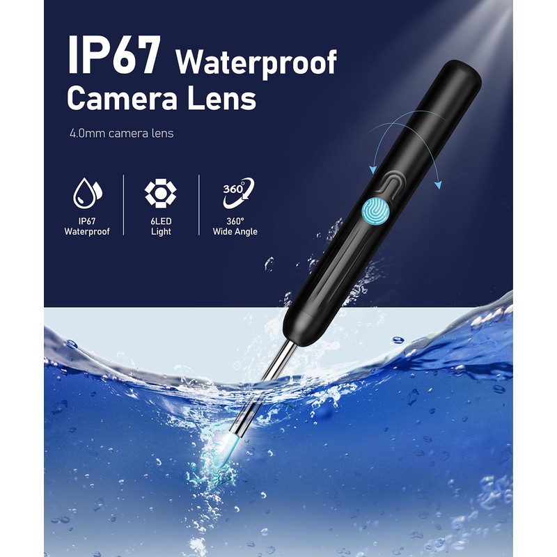 • IP67 Waterproof: Built-in rechargeable battery and USB Type C fast charging, one full charge can last up to 20 days. Ear wax removal tool camera IP67 Waterproof Lens allows easy cleaning by washing the camera with water