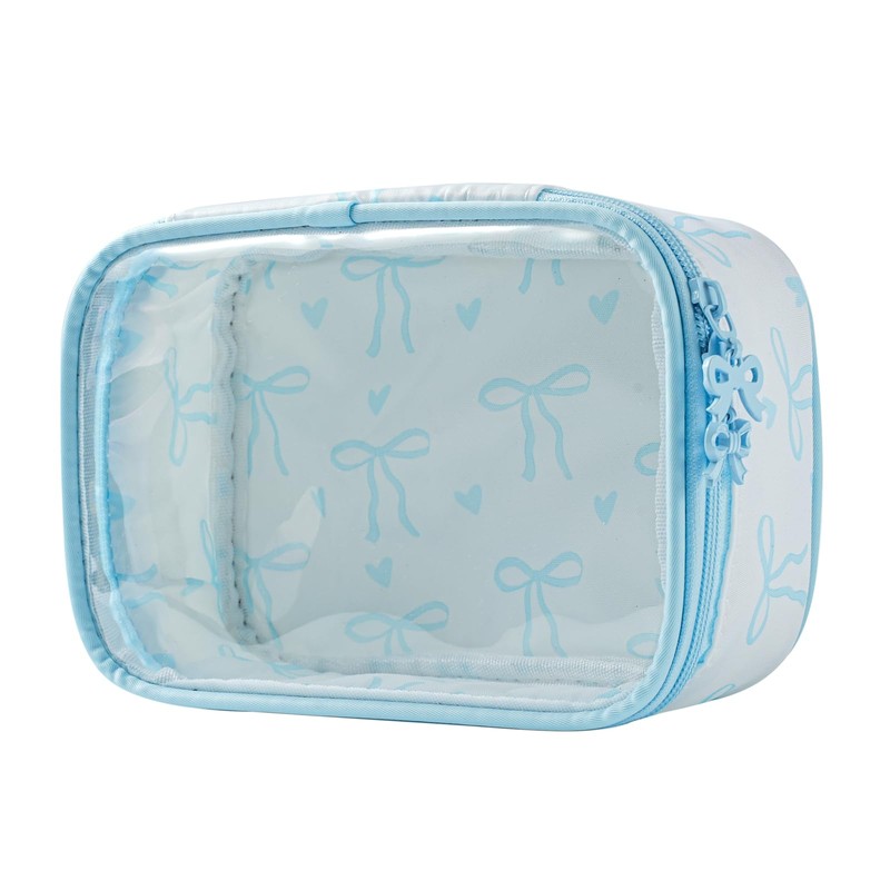 RSRSLEII Cute Clear Makeup Bag with Bow Pattern,Transparent Nylon Travel Cosmetic Case with Zipper,Portable Makeup Organizer Pouch for Essentials(02Blue)