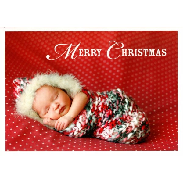 RSVP Merry First Christmas Sleeping Baby Nestled Snug Knitted Stocking Greeting Card