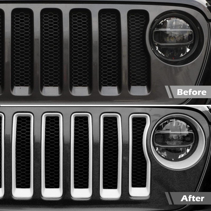 - 【HIGH QUALITY】JL Grille Grill Insert made of high-quality ABS plastic and used polish process for deformation protection, anti-corrosion, and years of trouble-free use