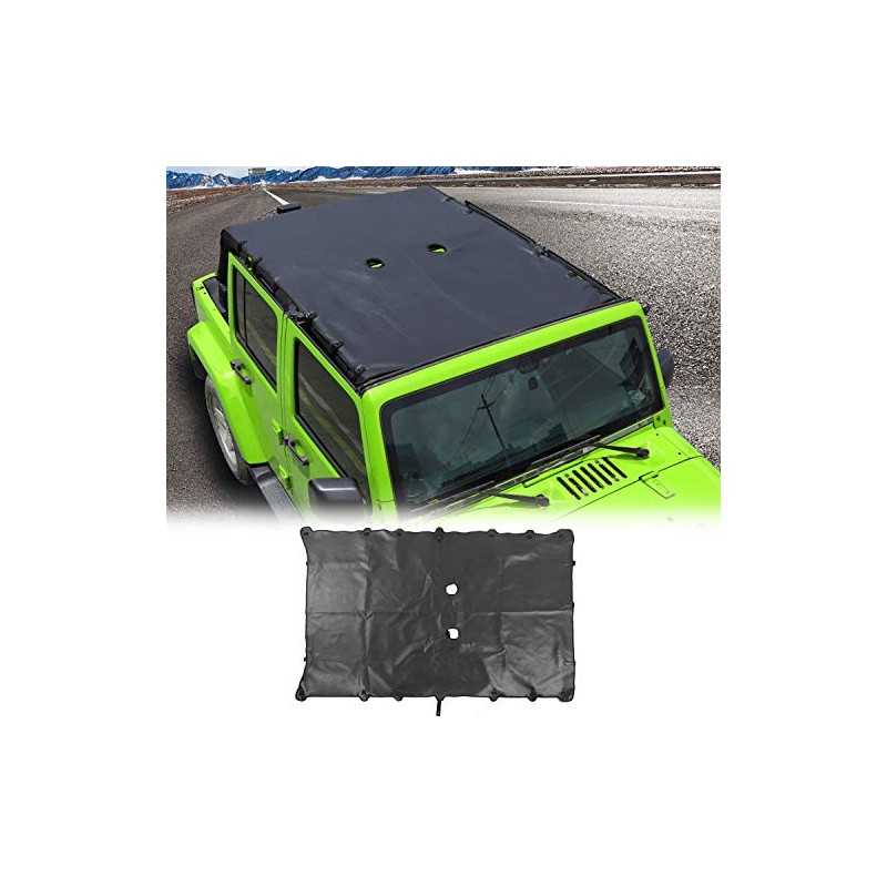 RT-TCZ Soft Leather Sunshade Top Full Length Cover for Jeep Wrangler 2007-2018 JK JKU 4 Door Black