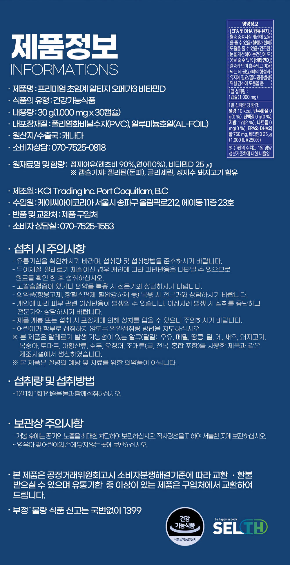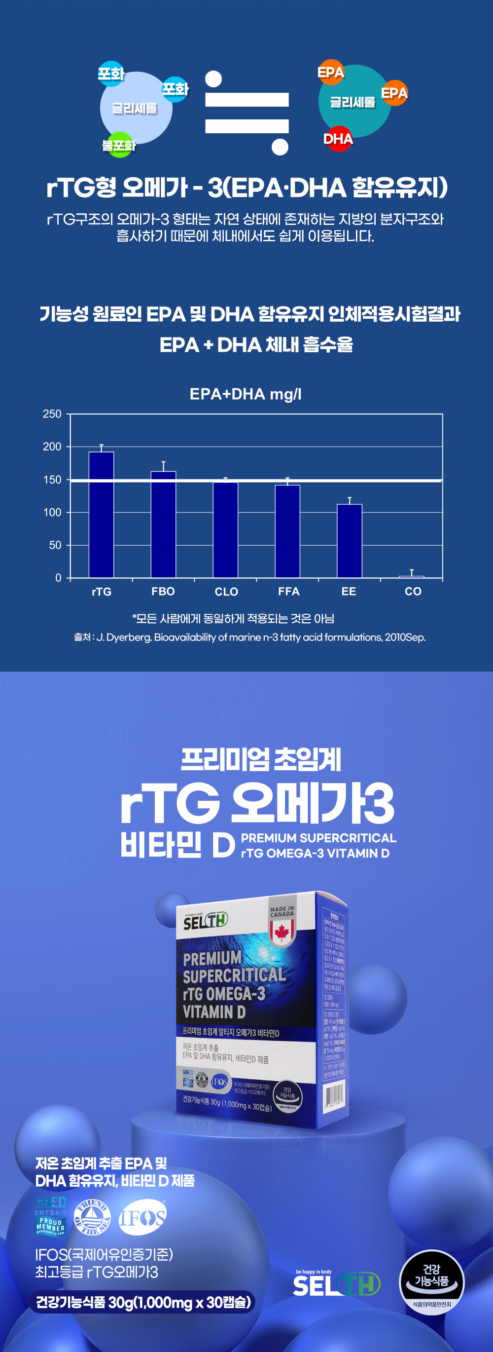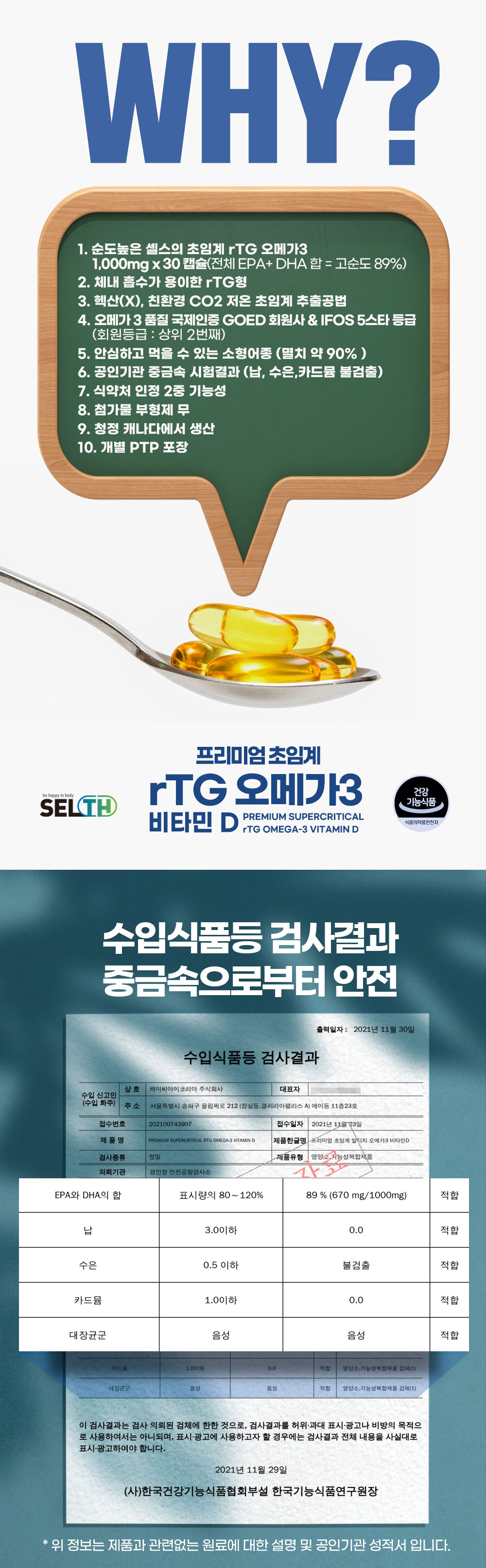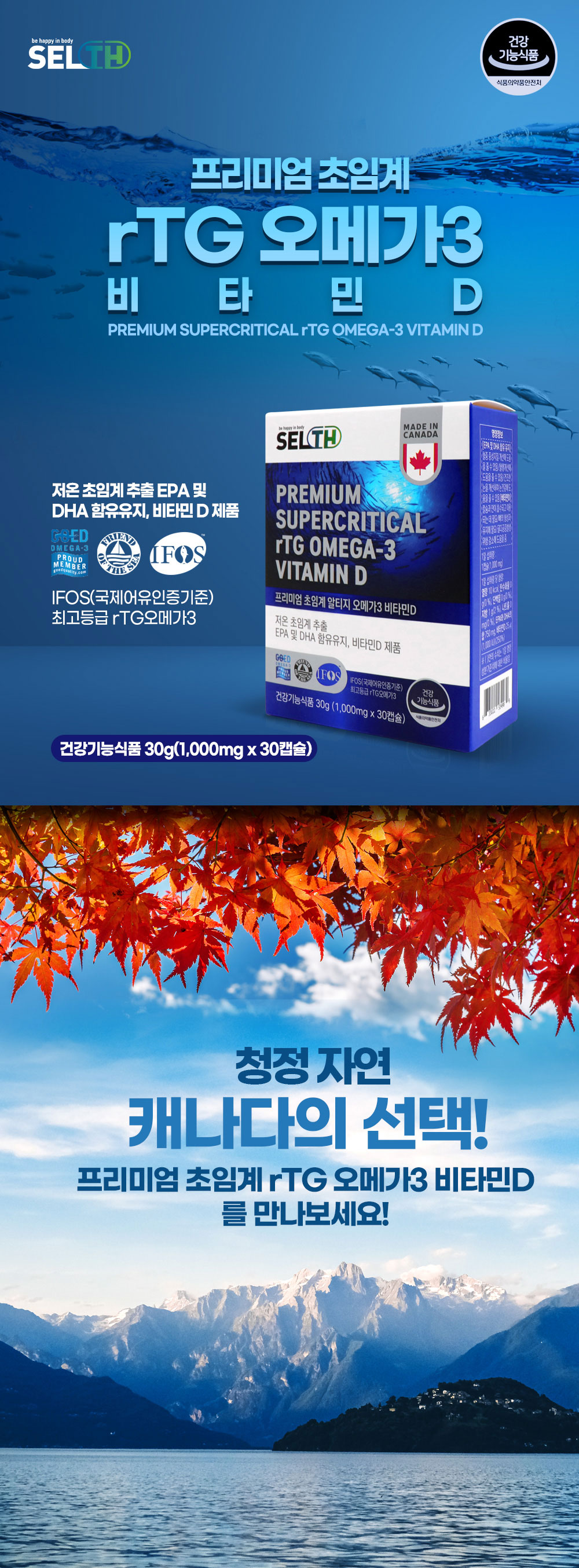 rTG Supercritical RTZomega3 Vitamin D 30 capsules x 3 sets / rTG 초임계알티지오메가3 비타민D 30캡슐 x 3세트