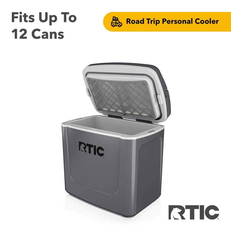 RTIC 8 QT Road Trip Personal Cooler, Small, Compact, Insulated, Portable Ice Chest Box for Food, Drink, Beverage, Beach, Camping, Picnic, Fishing, Boat, 12-Can Capacity, Dark Grey and Cool Grey