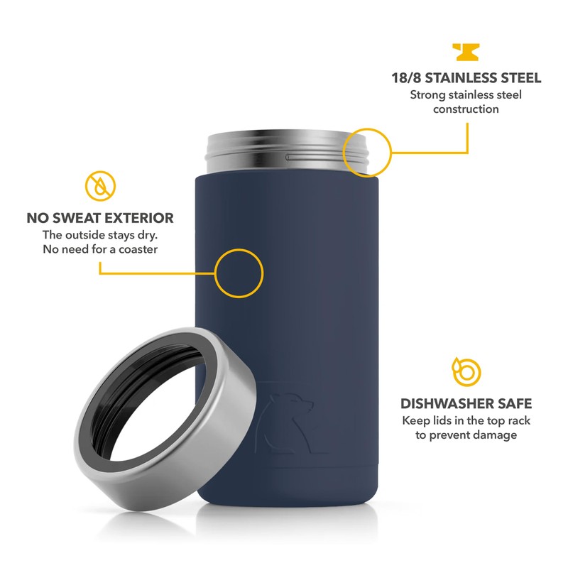 RTIC Can Cooler Insulated, Drink, Beverage, Bottle, Soda Can Cooler with Lid, Stainless Steel Metal, Double Wall Insulation Coozie for Cans, Sweat Proof, 16 oz, Navy