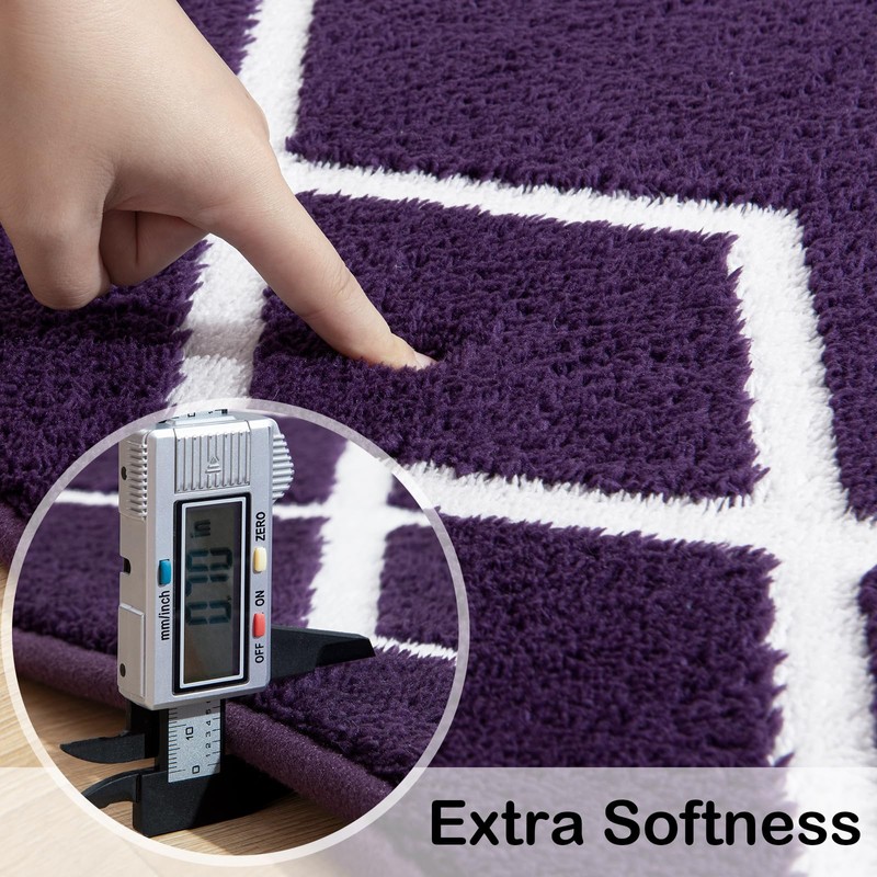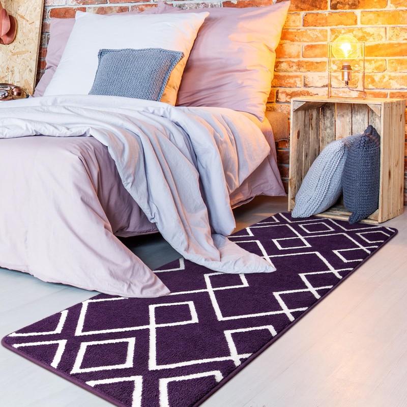 Rtizon - Alfombra de pasillo para recámara, 2 x 6 pies, color morado con espuma viscoelástica para pasillo, cama, esponjosa, lavable a máquina, alfombra geométrica marroquí para recámara, sala de