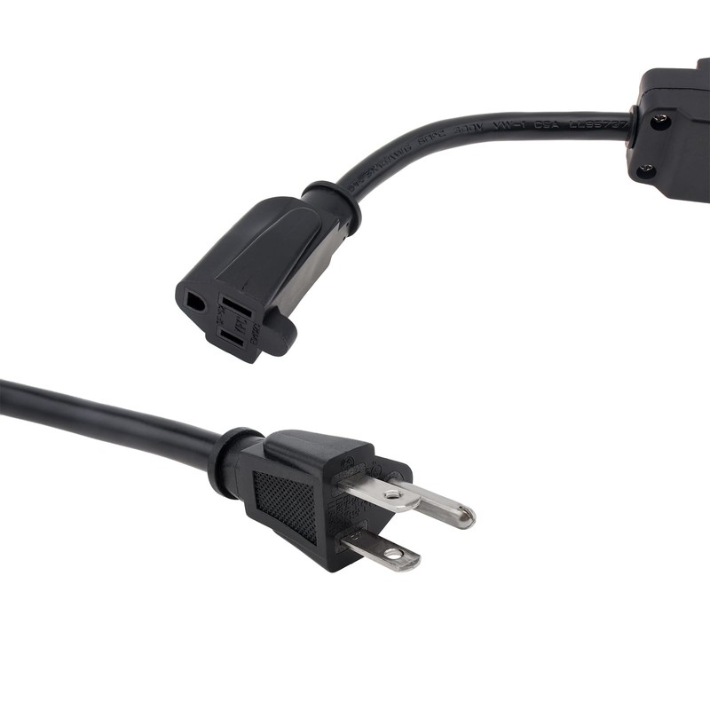 - 【UL Certified Outdoor Extension Cord】UL Listed. 14 AWG SJT heavy-duty cable 1.5-foot in length. The maximum electrical rating value is 15Amp, 125Volt, 1875 Watt. NEMA 5-15P to NEMA 5-15R grounded outlet plugs.