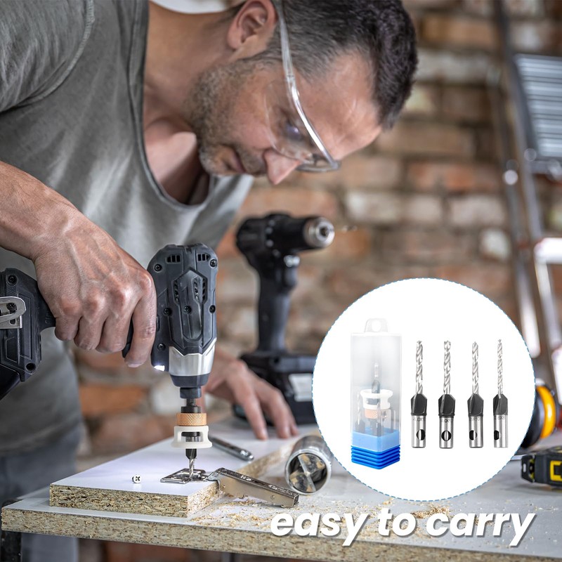 1. Countersink drill set includes 4 different sizes: 2.8 x 8 mm, 3.2 x 8 mm, 3.5 x 10 mm, 4 x 10 mm.