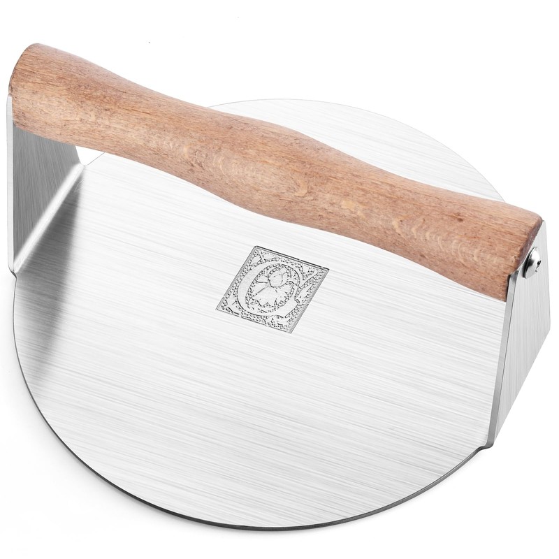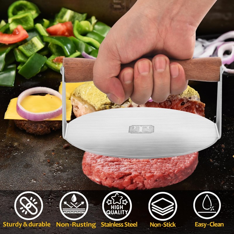 - Uniform & Smooth Pressing: Achieve perfectly even burgers every time thanks to the flat, smooth bottom of this press. Its brushed stainless steel surface is non-stick for hassle-free cooking and cleaning, and it's dishwasher safe for added convenience.